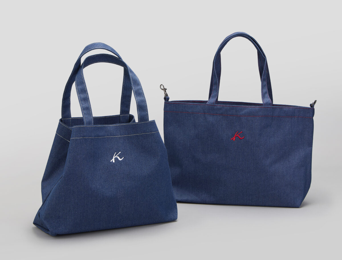デイリー使いに大活躍なデニムトートバッグ。A4サイズ収納可能でサイドのフックを留めても