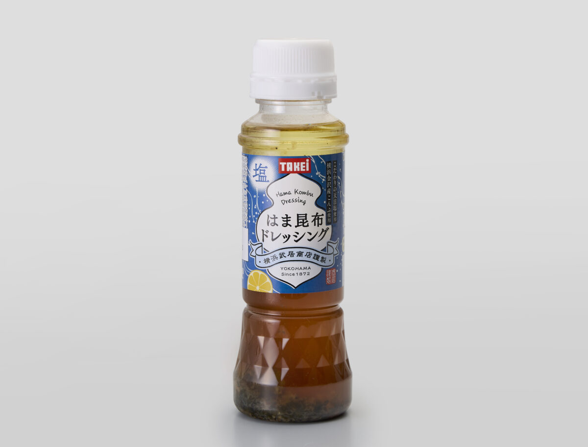 はま昆布ドレッシング (株)武居商店 横浜金沢区産の昆布と神奈川県産の青みかん果汁を使用。アクセントとして天日塩の四角い結晶が クセになる食感です。サラダ、お肉、お刺身、どんなお料理にも、相性抜群です。 WEBサイト ◎200ml 600円 ツイート